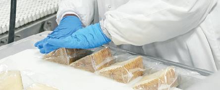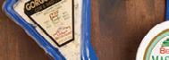 Alpine cheese, like Gruyere and Comte, are very wide cheeses and should be cut in a specific sequence to not only give a nice appearance when cut, but to extend the life of each cut. For whole wheels, cut into 1/8 segments, as is shown in image one. From a 1/8 cut, follow images two and three to break the cheese down into individual, sellable units.