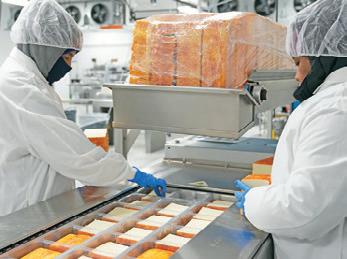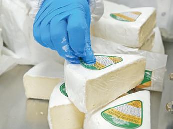 Cake cuts are used for two different styles of cheeses; medium whole wheels (ie Gouda or Manchego) and soft ripened large formats (ie Brie). For whole wheels, cut the cheese into quarter segments, as is shown in images one and two. Continue to cut into sellable segments, as is shown in image three.