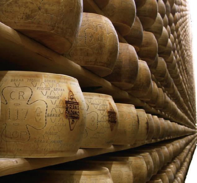 Cutting large wheels like Parmigiano Reggiano or Grana Padano is an art and takes experience and practice. There are multiple ways to cut these wheels, the grana cut is one of the easier ways to break down a large wheel. Start by scoring the rind of the cheese into quarters. From there, crack the cheese into quarters and then follow the diagrams to cut into sellable pieces.