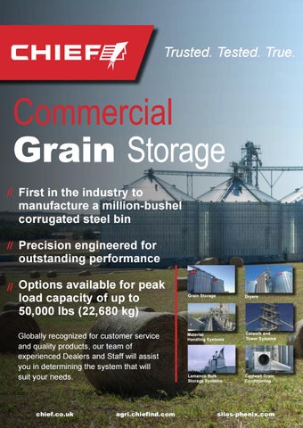 Commercial Grain Storage First in the industry to manufacture a million-bushel corrugated steel bin Precision engineered for outstanding performance Options available for peak load capacity of up to 50,000 lbs (22,680 kg) Globally recognized for customer service and quality products, our team of experienced Dealers and Staff will assist you in determining the system that will suit your needs.