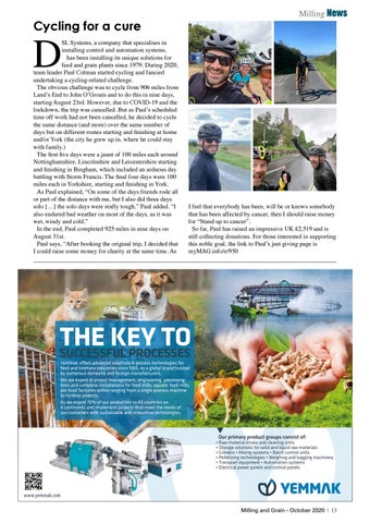 SL Systems, a company that specialises in installing control and automation systems, has been installing its unique solutions for feed and grain plants since 1979. During 2020, team leader Paul Colman started cycling and fancied undertaking a cycling-related challenge. The obvious challenge was to cycle from 906 miles from Land’s End to John O’Groats and to do this in nine days, starting August 23rd. However, due to COVID-19 and the lockdown, the trip was cancelled. But as Paul’s scheduled time off work had not been cancelled, he decided to cycle the same distance (and more) over the same number of days but on different routes starting and finishing at home and/or York (the city he grew up in, where he could stay with family.) The first five days were a jaunt of 100 miles each around Nottinghamshire, Lincolnshire and Leicestershire starting and finishing in Bingham, which included an arduous day battling with Storm Francis. The final four days were 100 miles each in Yorkshire, starting and finishing in York. As Paul explained, “On some of the days friends rode all or part of the distance with me, but I also did three days solo […] the solo days were really tough,” Paul added. “I also endured bad weather on most of the days, as it was wet, windy and cold.” In the end, Paul completed 925 miles in nine days on August 31st. Paul says, “After booking the original trip, I decided that I could raise some money for charity at the same time. As