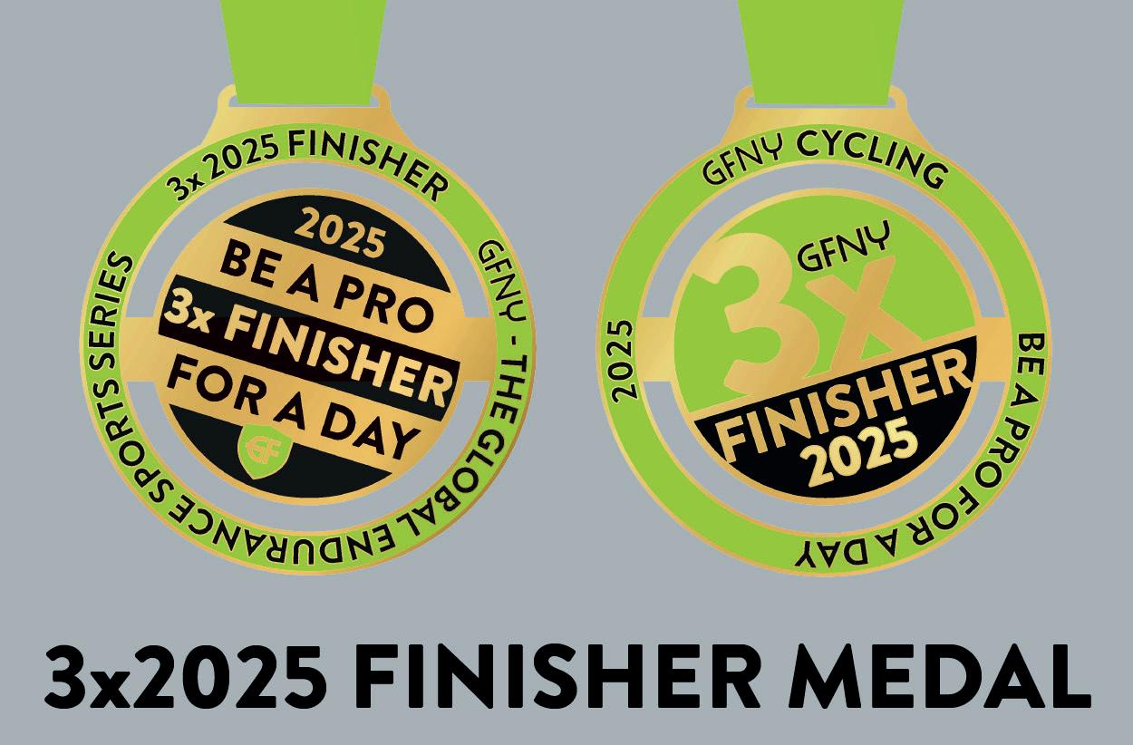 Your racing just got a whole lot more rewarding! Besides the great GFNY medal that you’ll receive at the finish line of GFNY Villard de Lans 2025, you also earn a “finish” towards earning the 3x2025 medal.