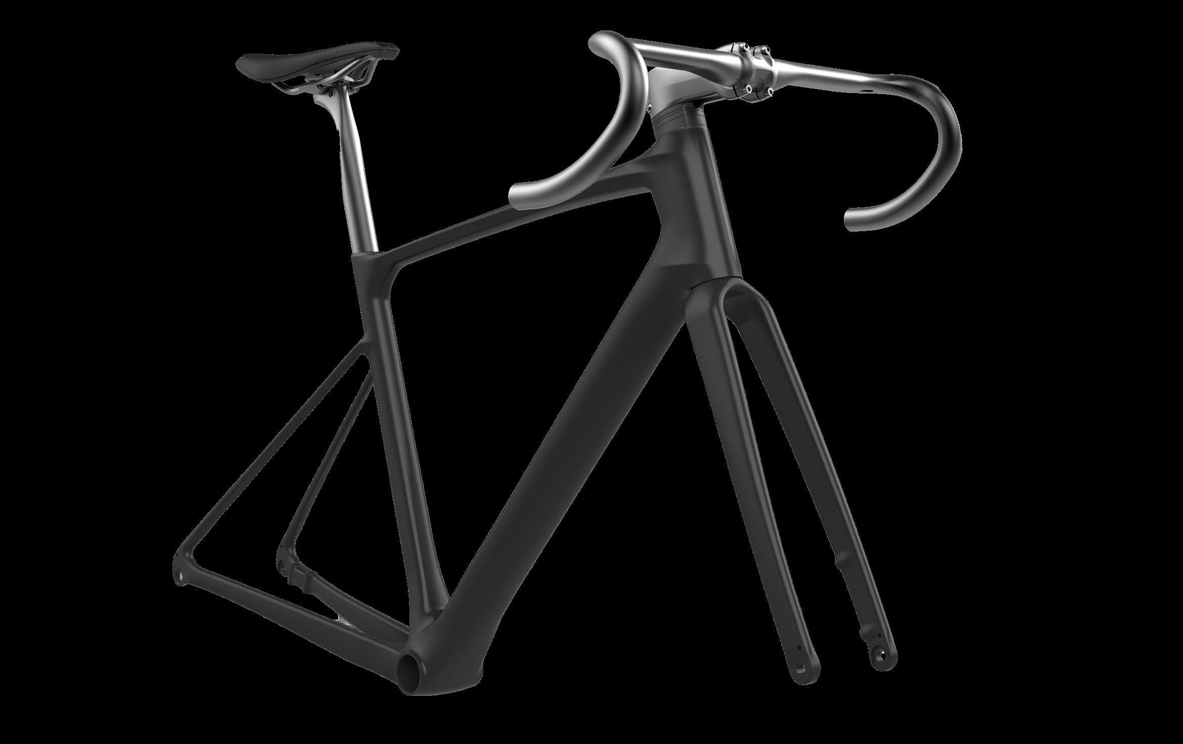 integrated stem with internal cable routing improves aero performance and aesthetics with wind tunnel-inspired design.