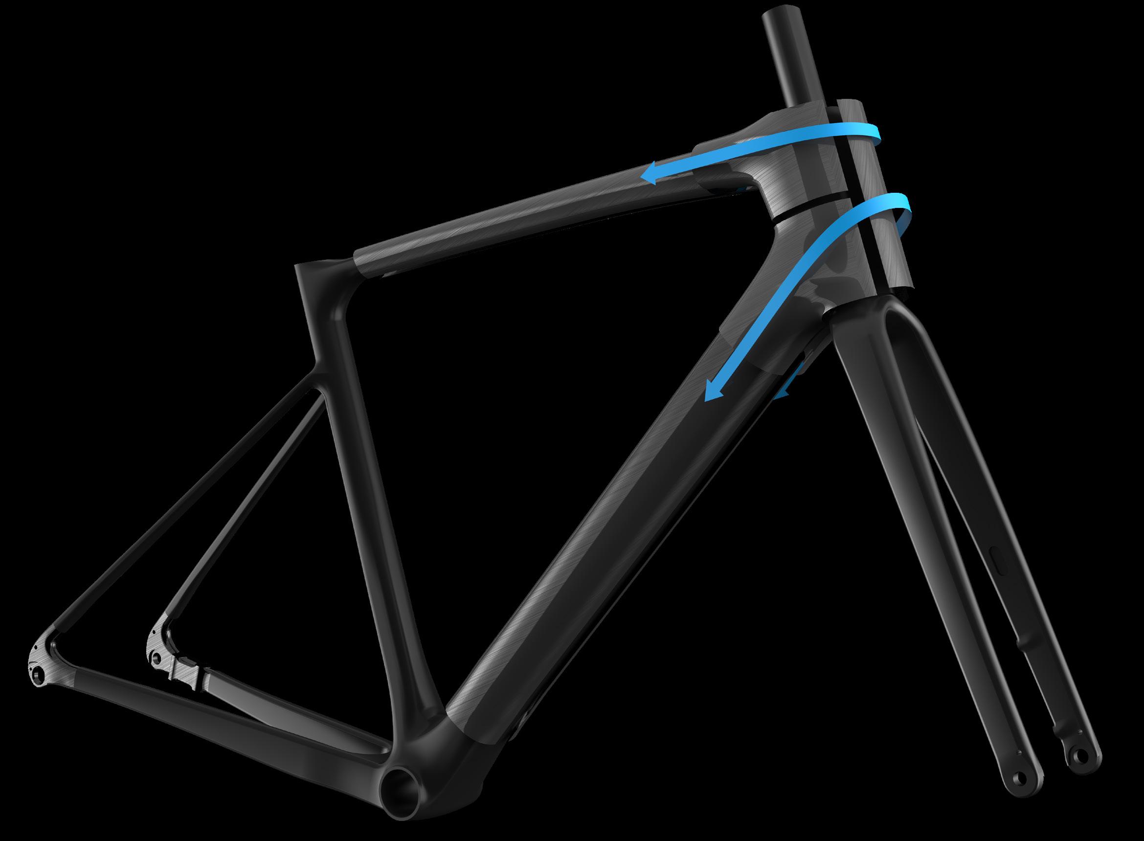 Increased frame stiffness means better power transmission, enabling the rider to reach and maintain higher speeds with less effort. The combination of lower weight and higher stiffness adds up to unrivaled overall efficiency.