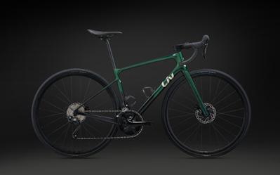 The Liv Contact D-Fuse handlebar features an ergonomic shape and 8-degree flare drop, for total control on those all-day rides. Wide, hookless carbon rims are designed for highvolume tubeless tires (up to 38mm) and a 36mm rim depth, providing predictable handling and stability from asphalt to pavé.