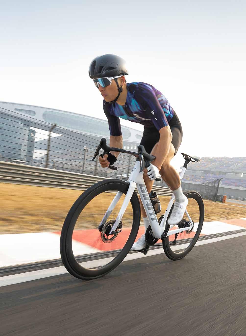 With expanded tire clearance up to 32mm, riders can choose higher-volume tires and run lower pressures. That means reduced rolling resistance and smooth momentum over imperfect road surfaces. The new CADEX Aero tires* and Giant Course tires also deliver improved grip and stability, helping you carry speed through corners and over rough pavement in variable conditions.