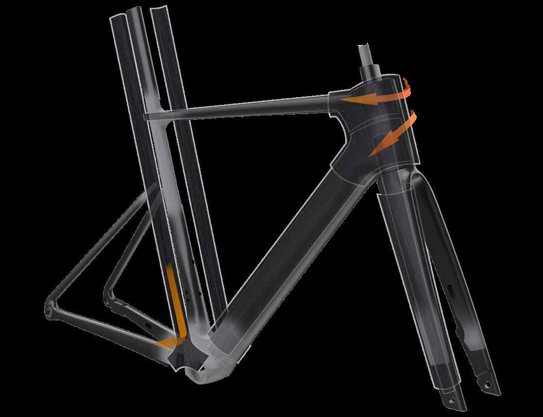 Tests show the new Propel Advanced SL frameset has 3.4% greater torsional stiffness compared to the previous generation and a 2.4% boost in pedaling stiffness. The reduced weight and increased stiffness add up to a 5.7% improvement in its stiffnessto-weight ratio—which means instantaneous reaction when you put power into the pedals (For more, see stiffness comparison page 17)