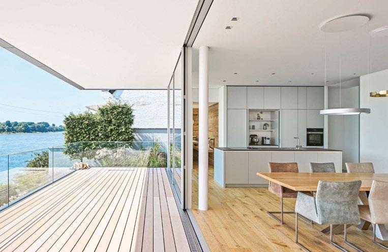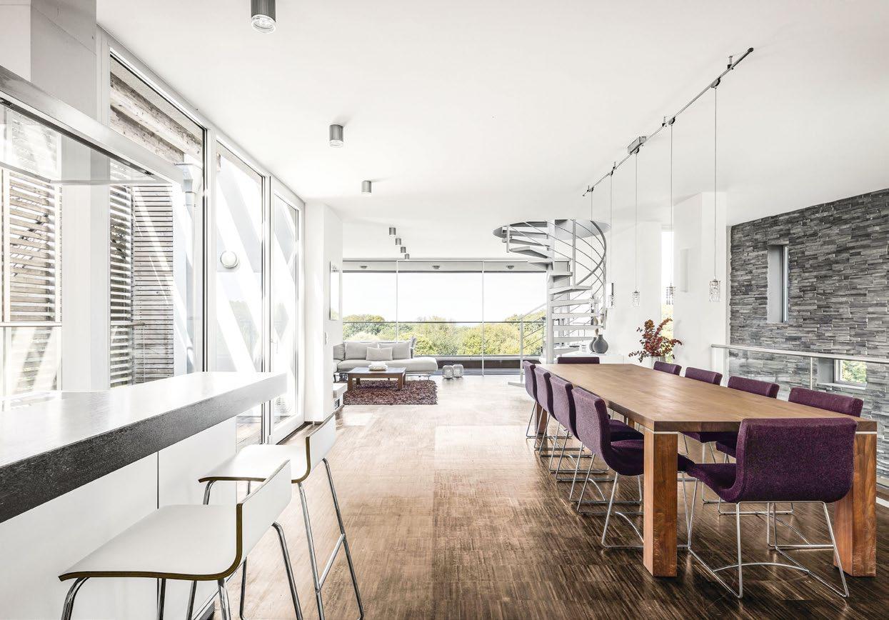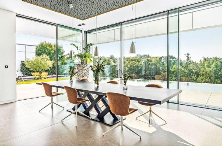 des espaces ouverts associé à une décoration minimaliste et luxueuse reflète le calme et la quiétude de l’environnement », explique Patrick Kohl, lui-même architecte chevronné. La surface habitable de plus de 500 mètres carrés est idéalement répartie sur trois étages.