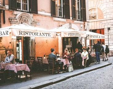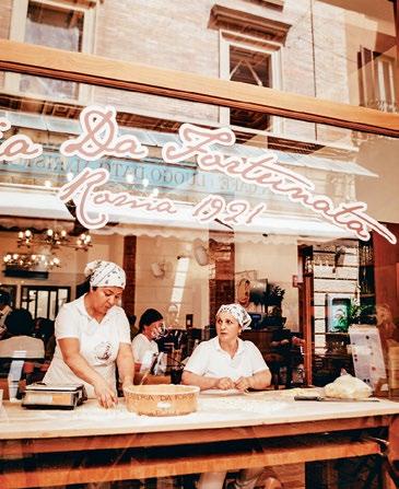 1 ÉLÉGANT L’hôtel boutique Palazzo Talìa, près de la fontaine de Trevi, combine design intemporel et patrimoine historique. 2 ADORABLE Des tables vêtues de nappes à carreaux rouges et blancs : dans certaines petites ruelles de Rome, loin de l’agitation, on trouve de charmants petits restaurants. 3 AUTHENTIQUE Dans l’Osteria da Fortunata, on peut assister à la préparation artisanale des pâtes fraîches. 4 SUBLIME Le coucher du soleil inonde les coupoles des splendides monuments de la ville d’une belle lumière dorée.