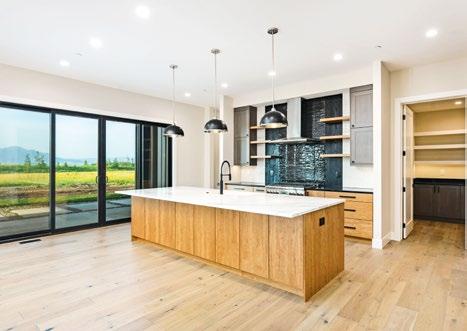 Un vaste hall d’entrée mène à l’espace de vie. Là, de grandes baies vitrées laissent entrer la lumière naturelle à flot à tel point qu’intérieurs et extérieurs se confondent. Cuisine, salle à manger et salon forment un ensemble harmonieux. La cuisine équipée d’appareils haut de gamme se prolonge par la salle à manger qui offre une vue sublime sur la vallée. Lors des soirées plus fraîches, un feu crépitant dans la cheminée crée une ambiance cosy.