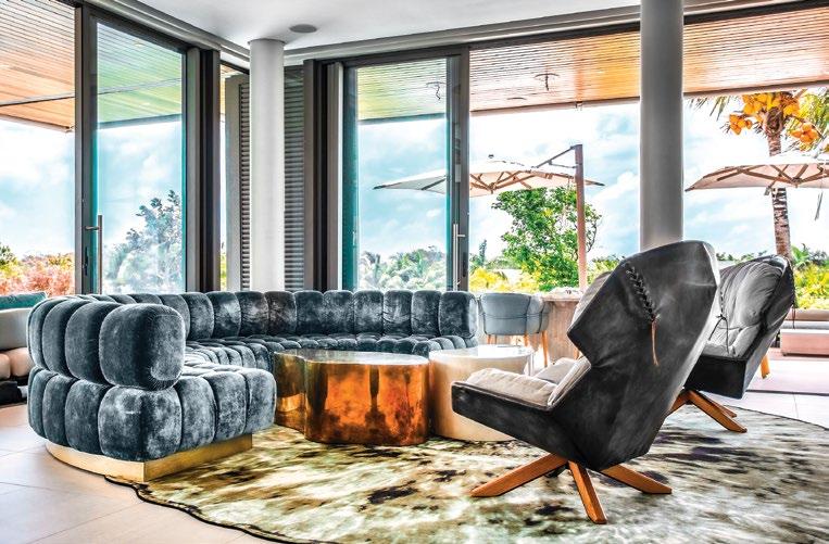 à mettre en valeur la vue fabuleuse sur la mer dont l’image se reflète dans les surfaces en miroir des murs arrière, ce qui agrandit visuellement la pièce.