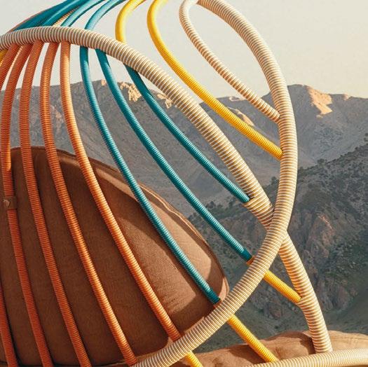 AMBIANCE Depuis plus de vingt ans, la marque belge Manutti crée d’élégants meubles d’extérieur. Légers, les fauteuils et les chaises (ci-dessus) de la nouvelle collection Muyu reflètent, comme si souvent chez Manutti, les couleurs de la nature.