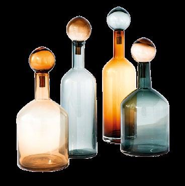 MIX AND MATCH Già il nome rivela cosa va abbinato: Bubbles and Bottles, una serie di caraffe e tappi del marchio Polspotten. Perfette per servire un buon vino, le bottiglie sono belle da sole o, meglio ancora, accostate in combinazioni casuali. Caraffe e tappi sono lavorati a mano e soffiati a bocca. Un vero lusso per qualsiasi ambiente!