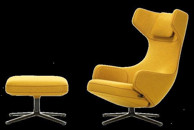 L’ORIGINALE Chi ama i classici del design, non può fare a meno di Vitra. Quel che ebbe inizio con l’amicizia tra il fondatore di Vitra, Willi Fehlbaum, e il duo di designer Charles e Ray Eames, è diventata una realtà di successo globale. Dalla collaborazione con i più grandi designer al mondo, sono nati numerosi classici, autentici e originali come la lounge chair girevole Grand Repos con ottomana coordinata, progettata dall’architetto e designer italiano Antonio Citterio, che collabora con Vitra fin dal 1988. La generosa imbottitura e gli invitanti braccioli consentono a chi vi si accomoda un docile movimento dalla posizione verticale a quella reclinata