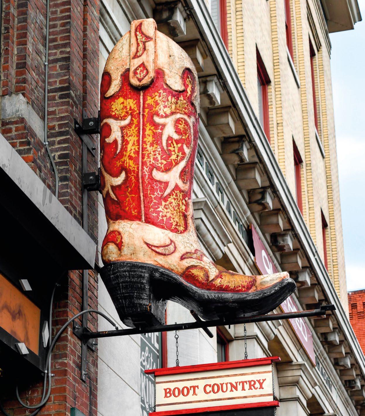 Gli imponenti edifici storici del centro sono testimonianze ben conservate della secolare storia e della cultura del Sud degli Stati Uniti. Vicino al Ryman Auditorium – conosciuto anche come la Mother Church of Country Music –la città si riempie regolarmente con il suono di rinomati artisti e musicisti emergenti. Negozi di grande tradizione costeggiano le strade: l’Hatch Show Print, una tipografia famosa per le stampe di affiche, l’Ernest Tubb Record Shop e l’iconico negozio di stivali da cowboy Boot Country («Buy 1 pair, get 2 pair free! »). Chi non sta attento, si ritrova a ballare un’autentica quadriglia con amici appena conosciuti.