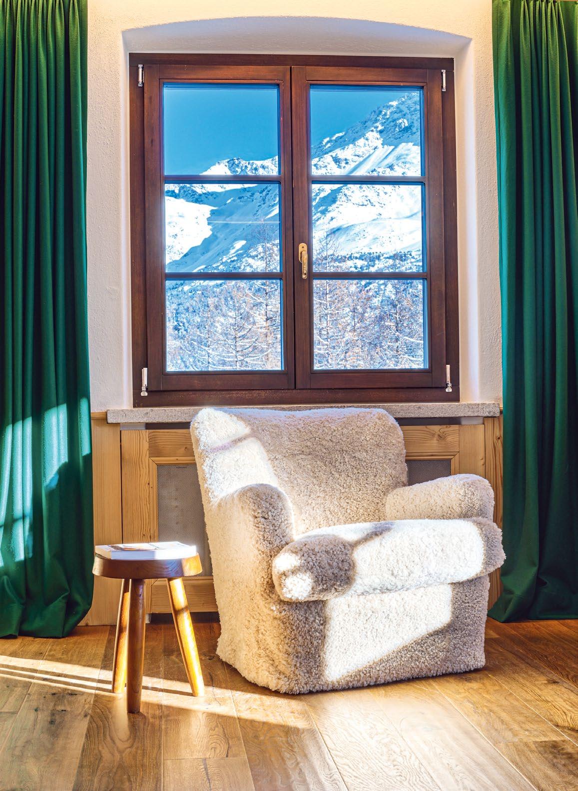 70 NEW HOME Refuge in the Swiss Alps: Chesa Bellaria impresses with artistic elements throughout.