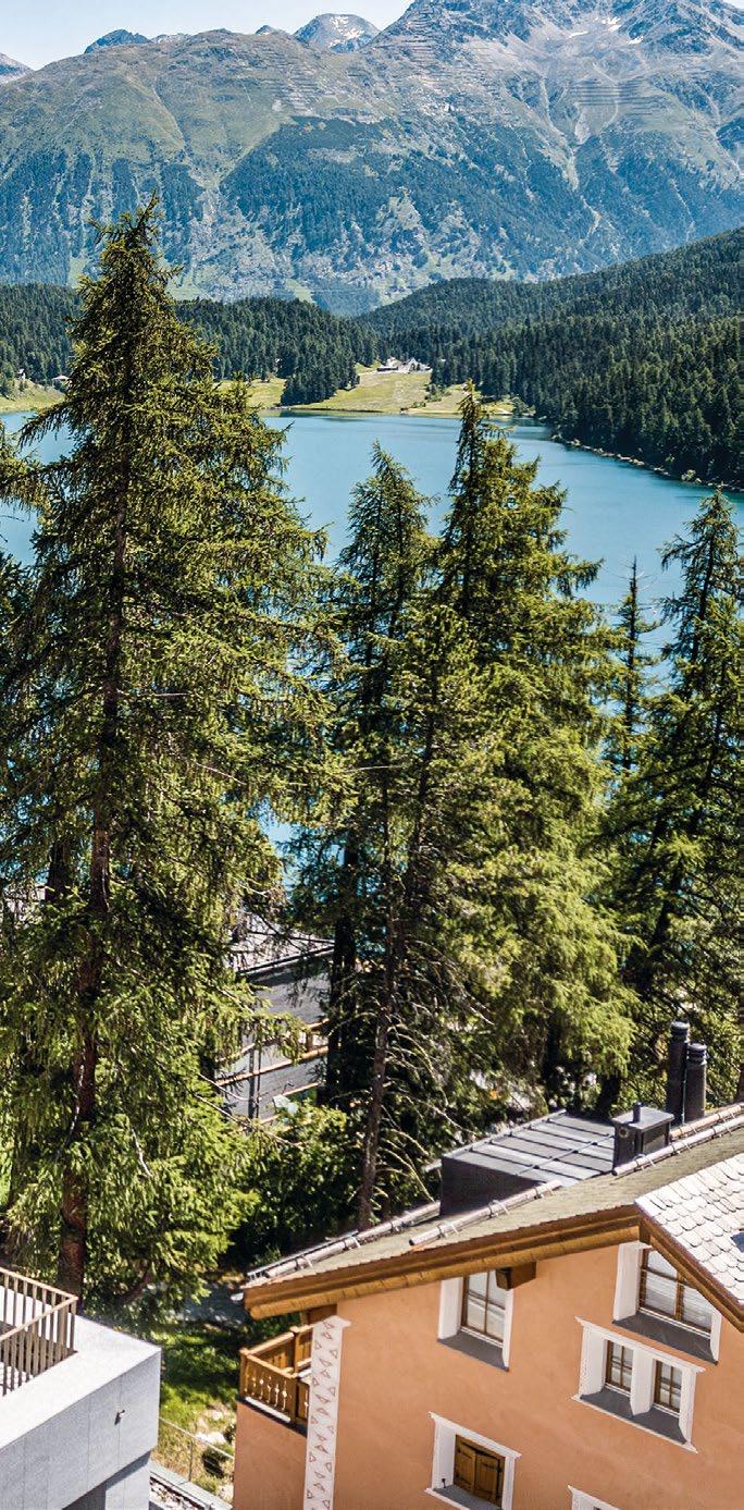 Even after the sun goes down, St. Moritz sparkles with life, from exclusive bars and lounges to stylish clubs. The Sunny Bar at the Kulm Hotel is a popular spot for locals, creatives and international guests. Founded by Gunter Sachs, the Dracula Club elevates exclusivity to an art form. This legendary, eternally youthful retreat admits only a select, hand-picked clientele. Plaun da Lej, a quiet hamlet on Lake Sils, is about a twenty-minute drive from St. Moritz. “In addition to a sauna with a view of the lake and the option of an ice bath, you can enjoy the famous seafood cuisine here,” says Maximilian Stamm, a license partner at Engel & Völkers Wohnen Schweiz AG.