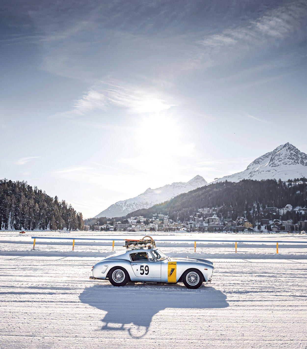 it freezes over in the winter, Lake St. Moritz in Switzerland turns into a venue for the International Concours of Elegance – a prestigious classic car event with Alpine flair.