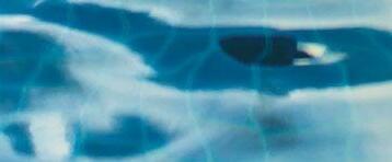 WITH GLASS DIVIDER & AUTO COVER. POOL HAS TWO GLASS-BOTTOM SECTIONS FOR POOL VIEWING BELOW & GLASS WALL AT END.