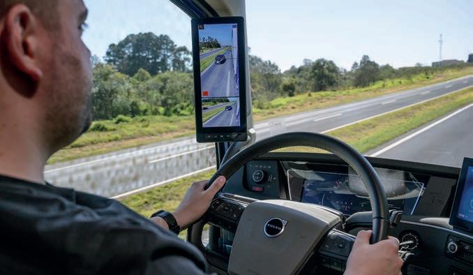 A novidade mais visível no novo FH são as câmeras substituindo os retrovisores. Essa tecnologia melhora a aerodinâmica da cabine, amplia a visibilidade do motorista e aumenta a segurança durante a condução. Mais eficientes que os espelhos retrovisores, as câmeras oferecem um campo de visão mais amplo e maior nitidez em condições de chuva, neblina e à noite, com o uso de luz infravermelha, conforme explica o gerente de engenharia de vendas da Volvo, Jeseniel Valério. “E durante o dia, as câmeras eliminam os ofuscamentos causados pelos reflexos dos espelhos tradicionais”, complementa.