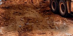 Os caminhões descem em cavas com até 120m de profundidade e sobem rampas de 35 graus com 50 toneladas