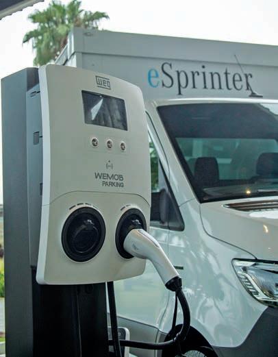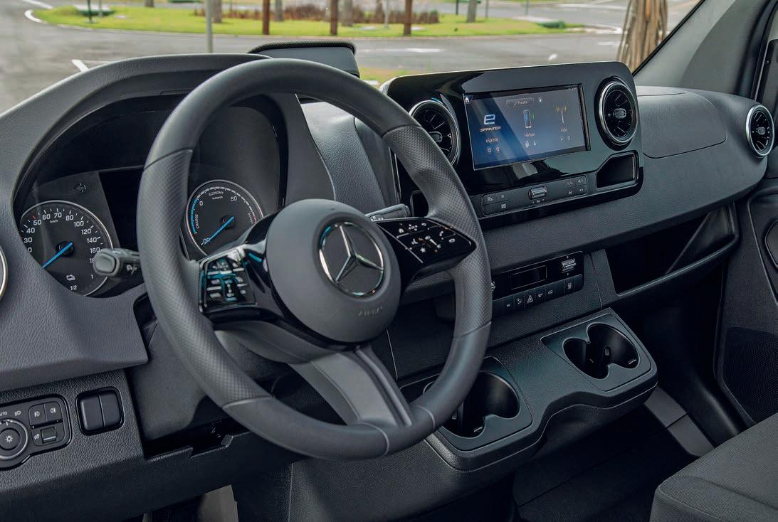 A eSprinter pode ser recarregada tanto com corrente alternada (AC) quanto com corrente contínua (DC). O carregador a bordo, que converte a corrente no veículo quando a recarga é feita com corrente alternada, como em uma wallbox, tem uma potência máxima de 11 kW.