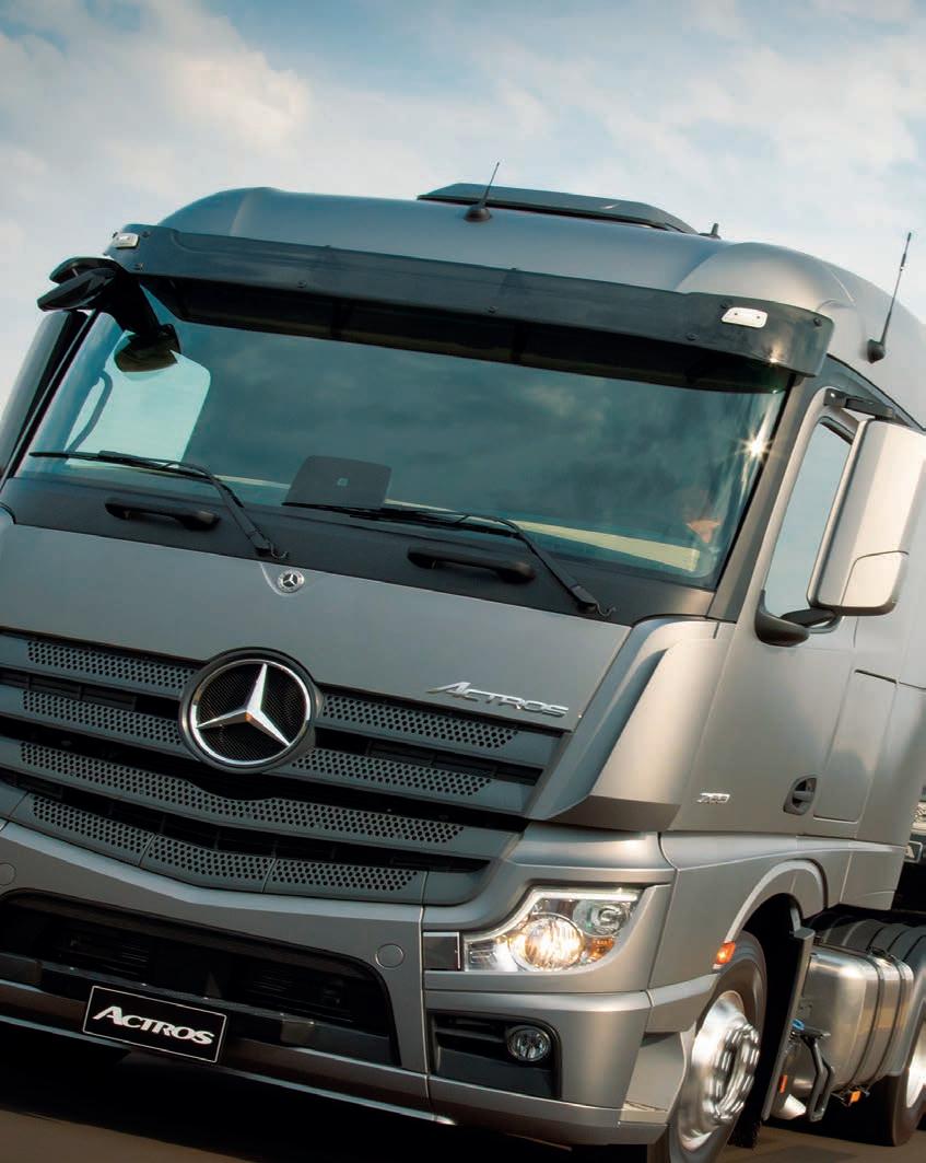 Reconhecido como o mais seguro e completo da categoria, o Actros Evolution combina eficiência e versatilidade em suas 10 versões, disponíveis nas configurações 4x2, 6x2 e 6x4, equipadas com motor BlueTec e potências de 450 cv, 510 cv e 530 cv.