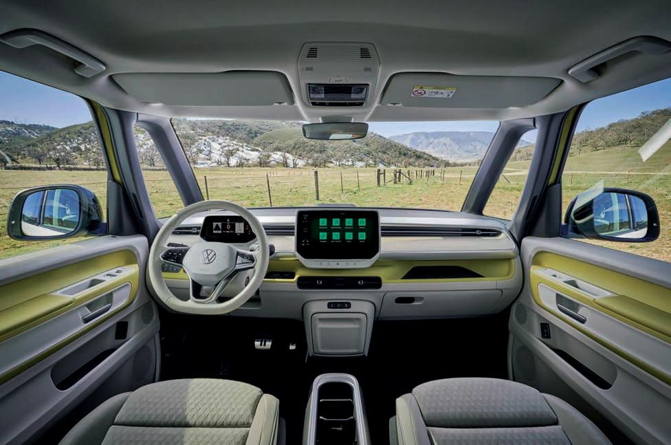 A divisão de veículos comerciais do Grupo Volkswagen terá a “nova Kombi” como des taque na IAA. Trata-se do Buzz Cargo, um modelo derivado da versão de passagei ros. O modelo possibilita a condução elétri ca prática conta com software que pode ser atualizado via Wi-Fi, o que o torna mais efi ciente. O Buzz Cargo vem de fábrica com sistemas de infoentretenimento totalmente conectados, volante multifuncional, faróis de LED, controle climático automático, contro le de cruzeiro e sistemas de assistência/avi so ao motorista, como Car2X e o sistema de frenagem de emergência Front Assist (mais o Lane Assist padrão no ID. Buzz Pró). Ele está equipado com a maior bateria da família ID. A bateria recarregável de íons de lítio oferece energia de 77 kWh (82 kWh brutos) e fornece energia a um motor elétri co montado na traseira de 150 kW (204 hp) que desenvolve 310 Nm a partir do primeiro giro do motor. O consumo de energia WLTP: 20,6 kWh / 100 km (Carga: 20,4 kWh / 100 km). A autonomia pode ser de até 423 qui lômetros. Conectada a uma estação de car regamento rápido DC com potência máxima de carregamento de 170 kW, a bateria pode ser carregada de 5% a 80% da capacidade em cerca de 30 minutos.