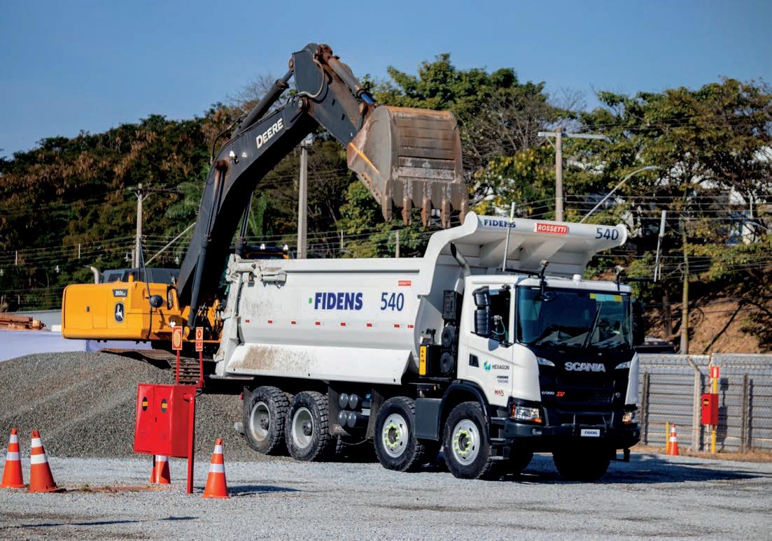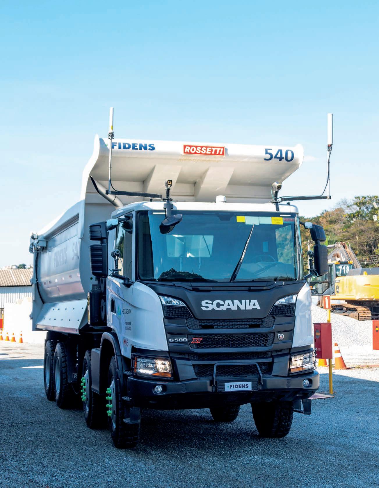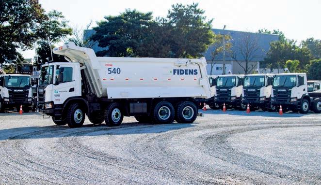 tecnologia porque há demanda para operação em limpezas de barragens no País. Nesse sentido, a Fidens presta serviço para empresas como a Vale e AcelorMittal. Na operação da Fidens, o Scania G 500 atua com báscula de 30 m³. Mas o modelo também pode receber báscula de 22 m³.