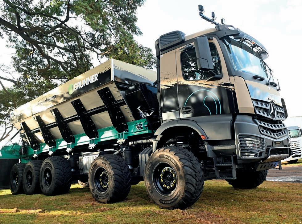 O Scania G 500 8x4 XT Heavy Tipper conta com duplo eixo direcional e foi desenvolvido para rodar na operação da Fidens, empresa que presta serviço na área de mineração. Nas atividades, o modelo vai atuar no descomissionamento de barragens.