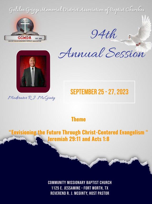 Welcome to the Ninety Fourth Annual Session of the Galilee Griggs Memorial District Association of Baptist Churches.
