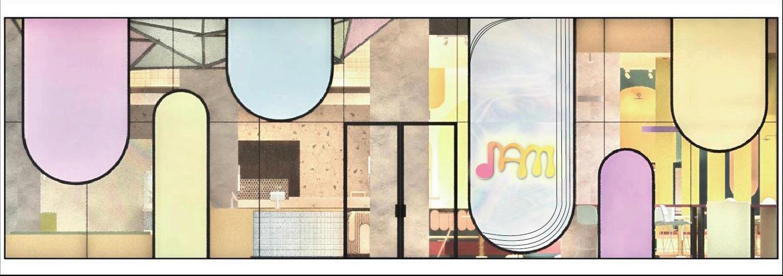 Jam, a homograph as “fun” in Korean slang, improvising of musicians, sweet food made from fruit and sugar, will be a restaurant cafe lounge inspired from K pop culture mainly selling baked goods. It aims to be an entertaining space for people to stop by in Union Station who are jam packed with their busy lives to provide a sense of community.