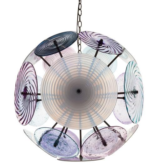 CHCON7-46: a mix of 12" and 14" Rondels in Celadon, Opaline, Roselin Primavera, Pink, Lilac, Periwinkle Twist and Tourmaline Lustre with Polished Nickel