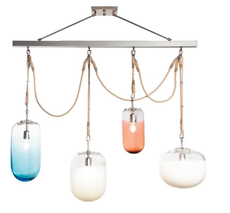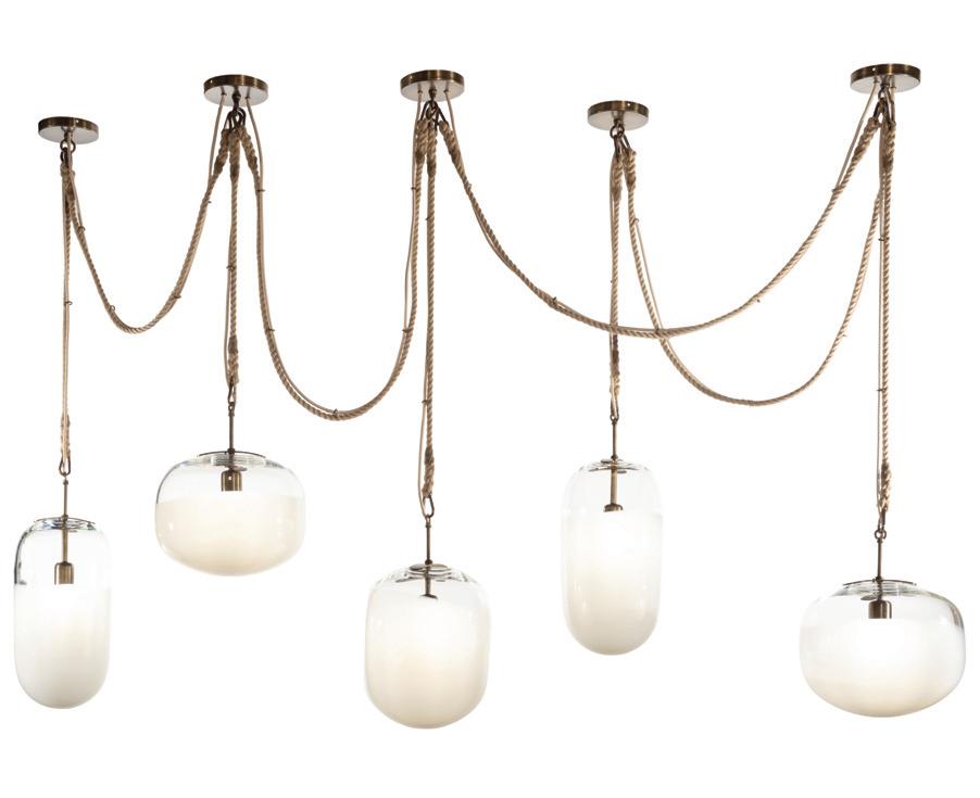 Available in four sizes and a range of glass finishes, it can be specified as a single pendant, grouped on a round or rectangular canopy, mounted on a linear bar, or swagged across the ceiling for a more sculptural effect. Designed for infinite variation, Gourd is made to anchor a space and create bold, custom installations.