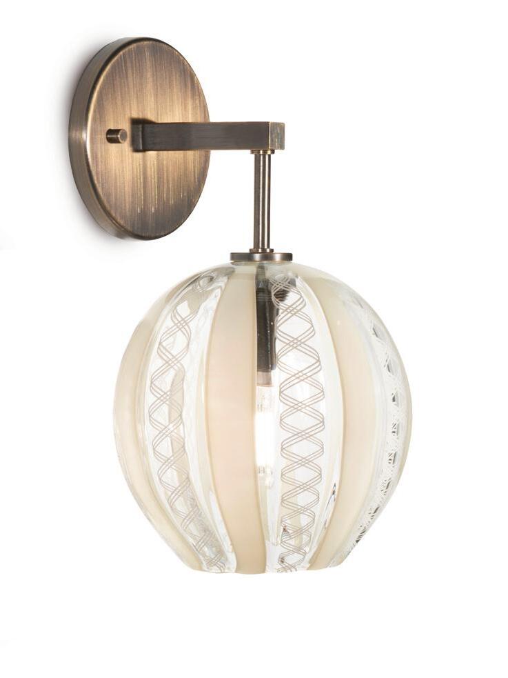 Rondel Sconce: 12" Rondel in Aurora Lustre with Brushed Brass