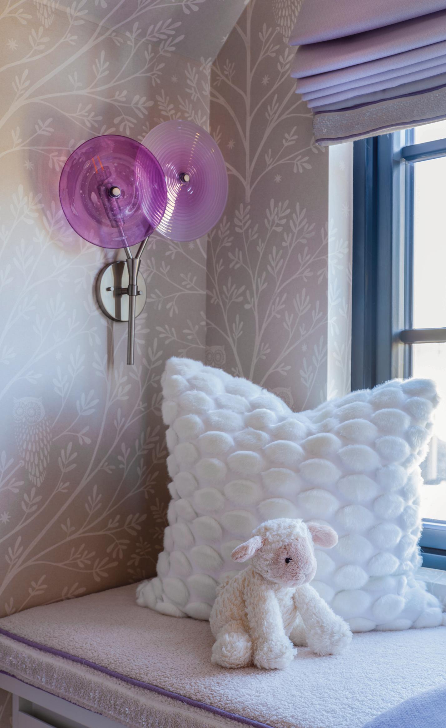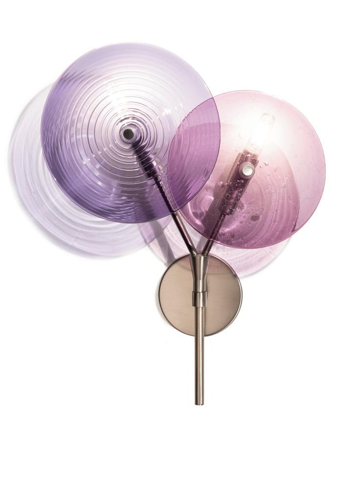 Rondel Pair Sconce: Rondels in Berry Primavera and Lilac Wrap with Brushed Nickel Studio Lagerloef Design, Landino Photography
