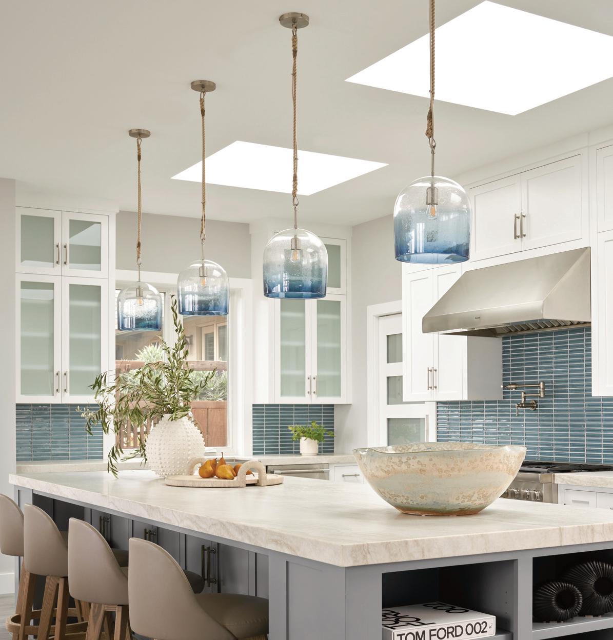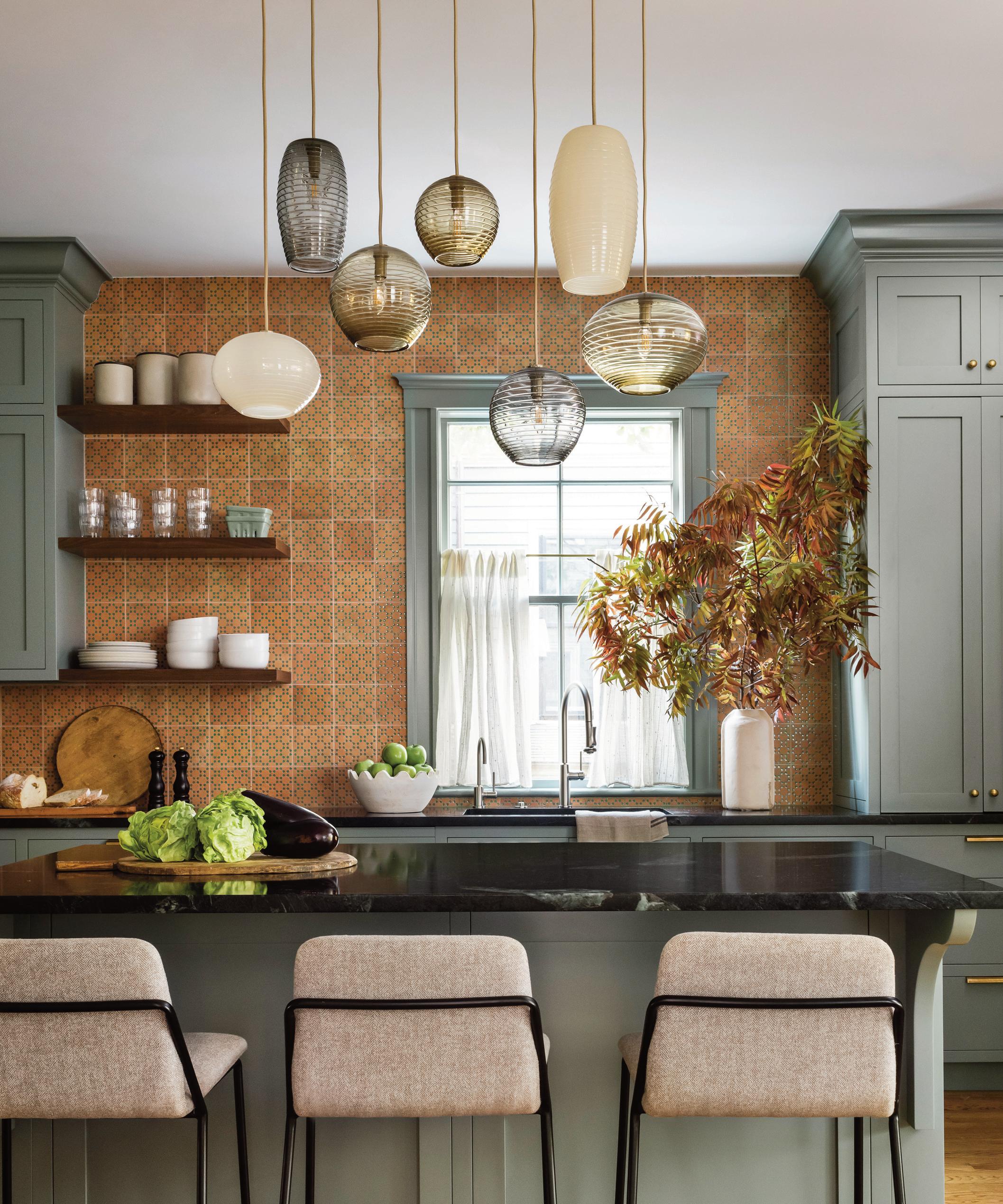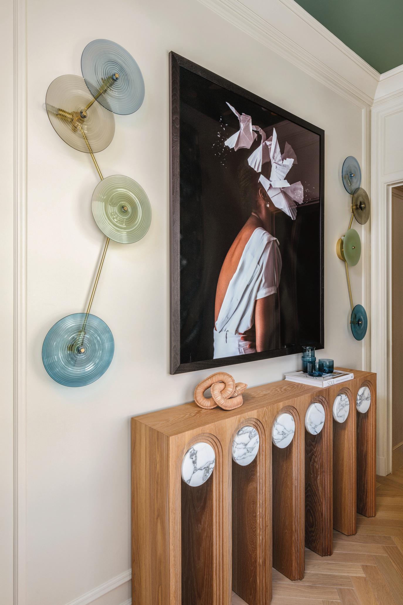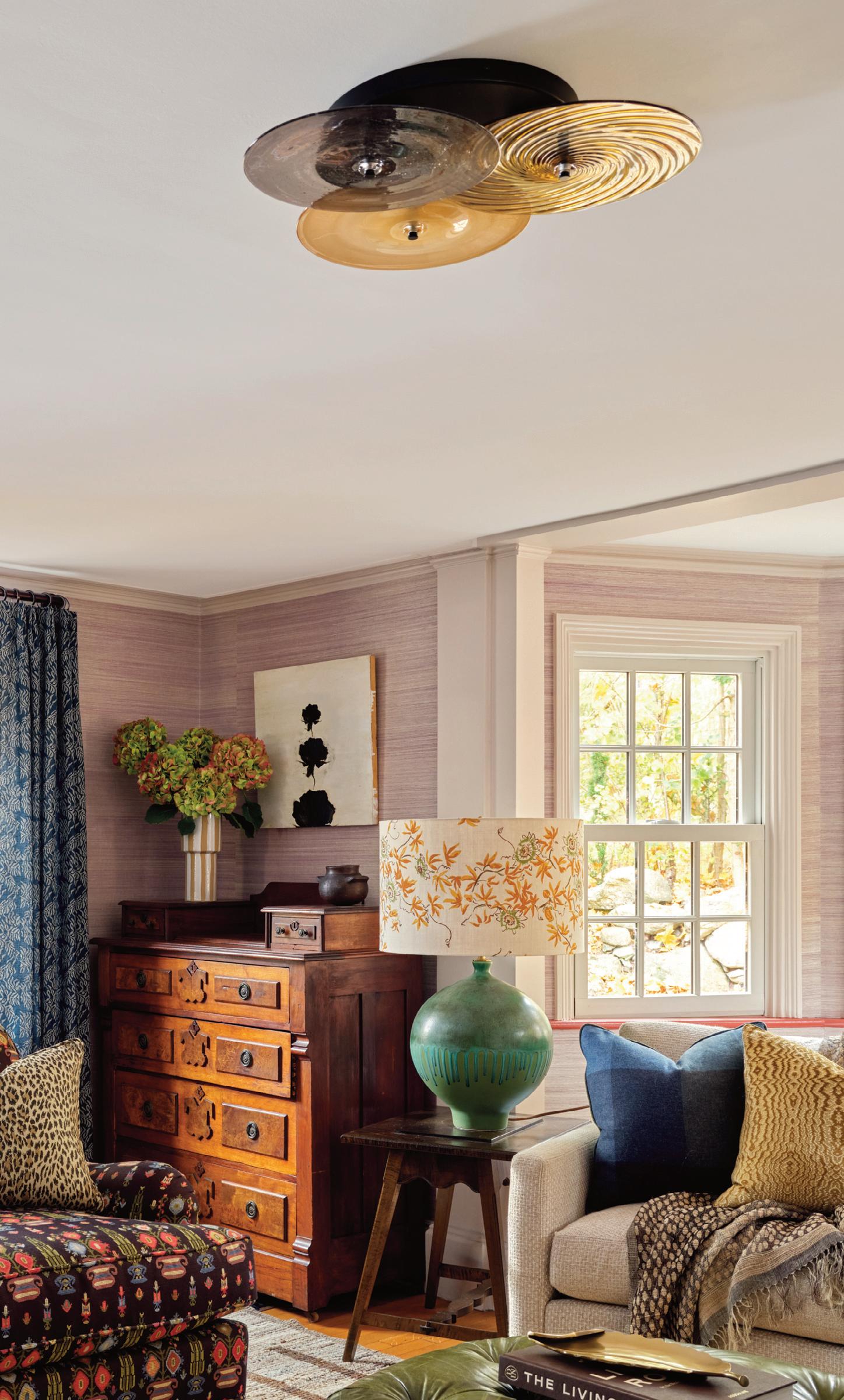 SCCON4-4719: 10" Rondels in Steel Blue, Olive, Celadon, and Sea Blue Wrap with Brushed Brass Tineke Triggs Interiors, Christopher Stark Photography