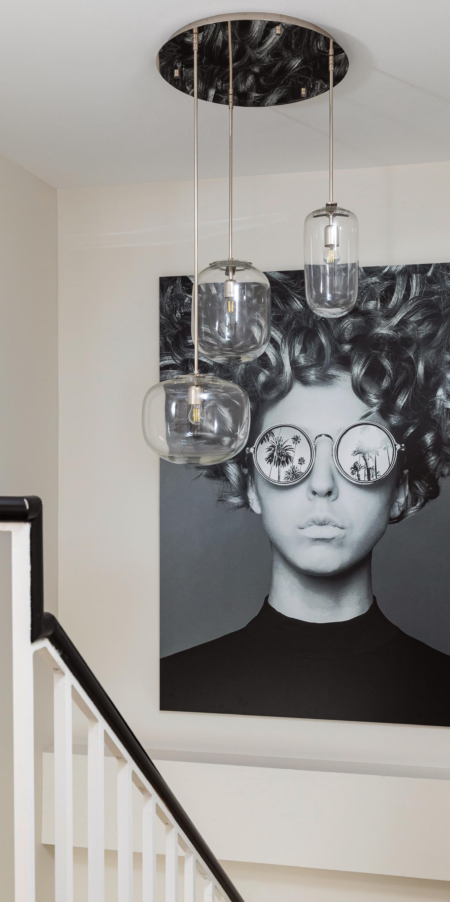 Lens pendant in Smokey Quartz Lustre with Brushed Brass Surroundings Interiors, Brian Wetzel Photography
