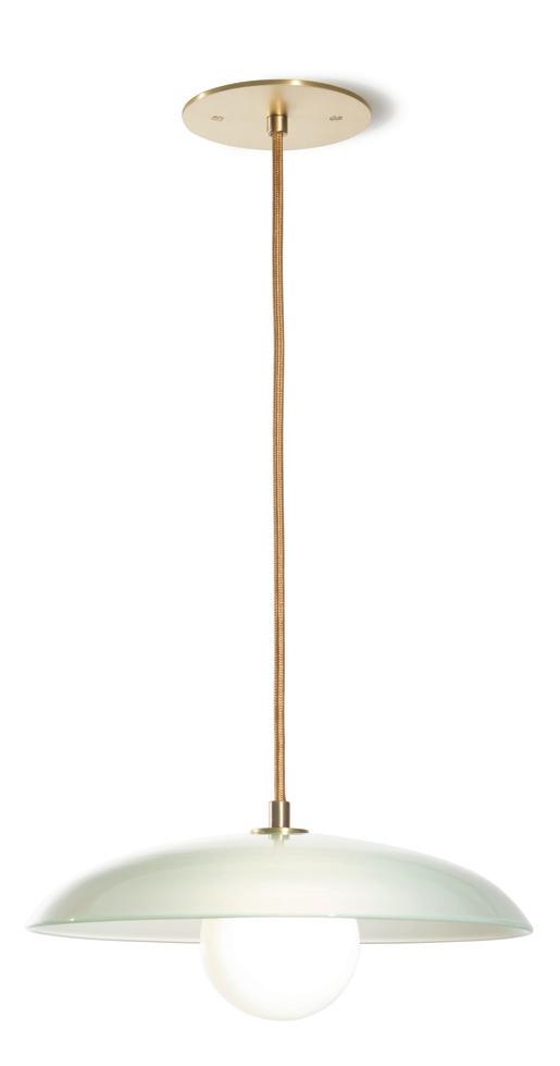 Lens pendant shown in Persimmon Wrap with Brushed Brass