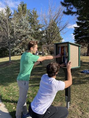 day to initially stock the mini library. “Students can take a book and leave a book,” said Tukin. “I was excited to help with the mini library because I like making change in society, especially in the Greenhills community.” The mini library works through the exchange of books when people take a book and share a book. “The idea is that anyone who passes by can come and take one and hopefully, anybody who passes by will also at some point leave one,” said Halliday.