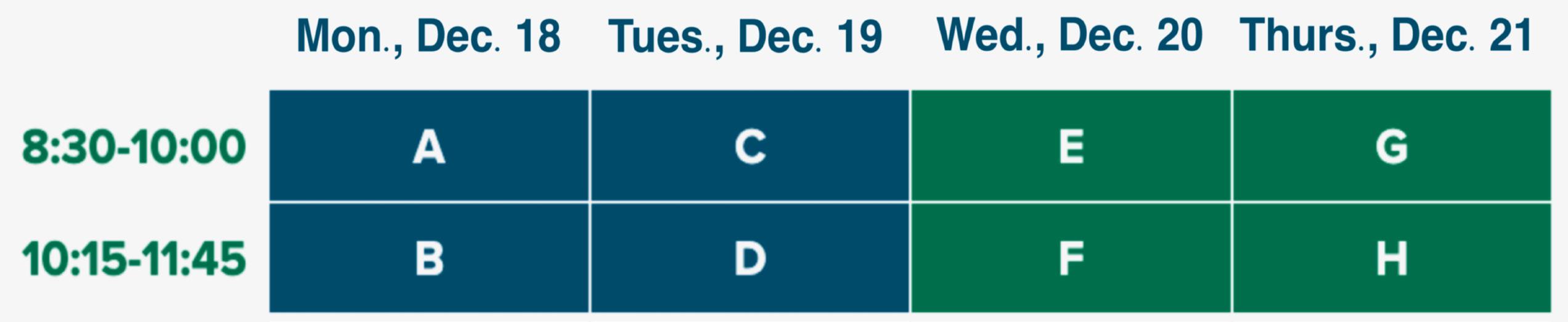bility in their schedule due to required attendance for classes that would not traditionally have final exams.
