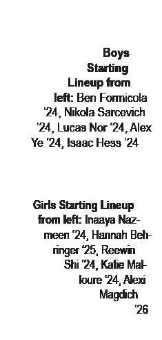 The start ing lineup of Nor, Sarcevich, Alex Ye ‘24, Ben Formicola ‘24, and Isaac Hess ‘24 took last year to develop as a group.