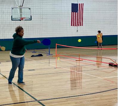 GAME ON Middle School Head Mayra Diaz leading the charge on the pickleball court with other club members. “In Pickleball Club, I really enjoy getting to play, and that’s the other reason why I have a Pickleball Club,”