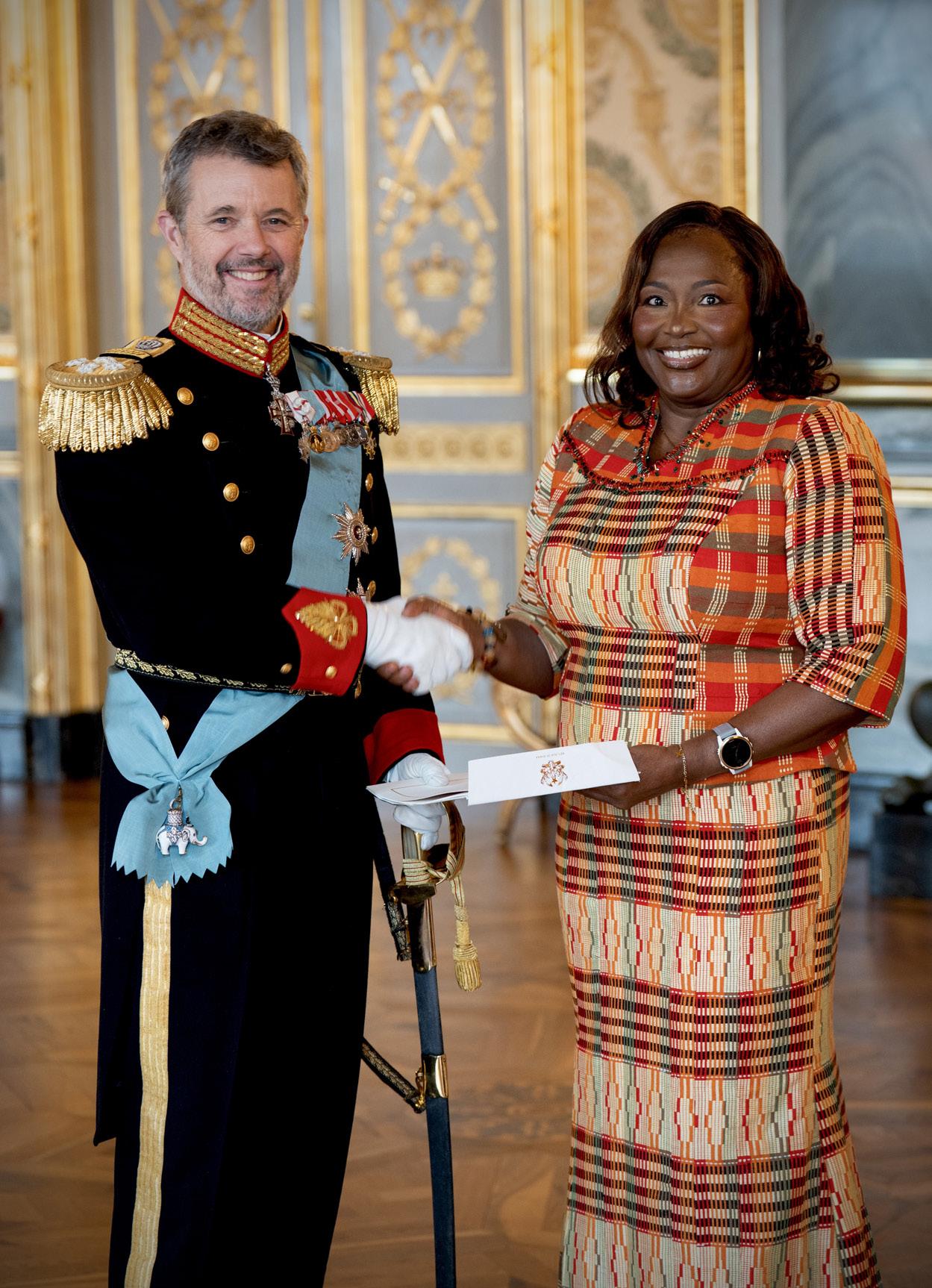 En række nye ambassadører var i begyndelsen af november på Amalienborg for at aflevere deres akkreditiver til kong Frederik. Blandt de nye ambassadører var også Ghanas nye repræsentant i Danmark, Margaret Miewien Chebere.