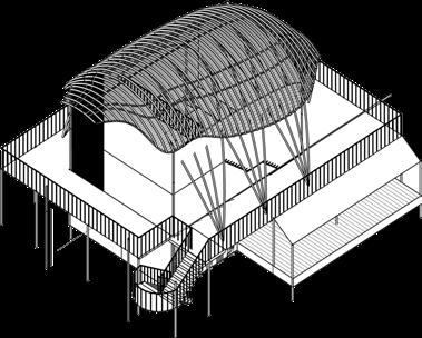 The roof inspired by banana leaves, offers thermal insulation, blending with the environment.