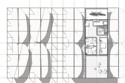 The shading, inspired by banana leaves, rotates to adapt to sunlight and privacy, enhancing energy efficiency.