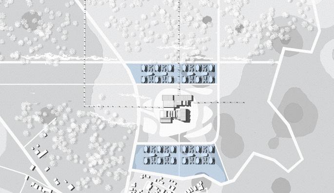 Contribution: Developed the landscape and topographical elements of the site model, shaping terrain and integrating vegetation for a realistic representation. Focused on contextual elements such as pathways, roads, and open spaces to enhance the clarity of the site context.