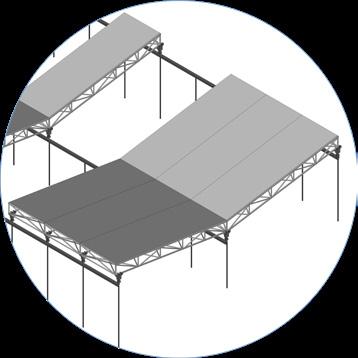 The movable roof systems allows dynamic control of ventilation and lighting, ensuring a comfortable and energy-efficient working environment.