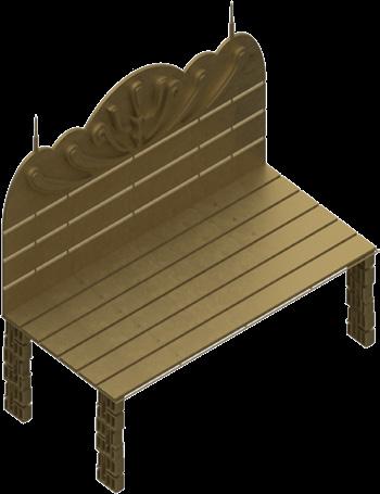 The bench integrates sigils into design, serving as a symbolic resting point. could combine together as Bowie’s bed.