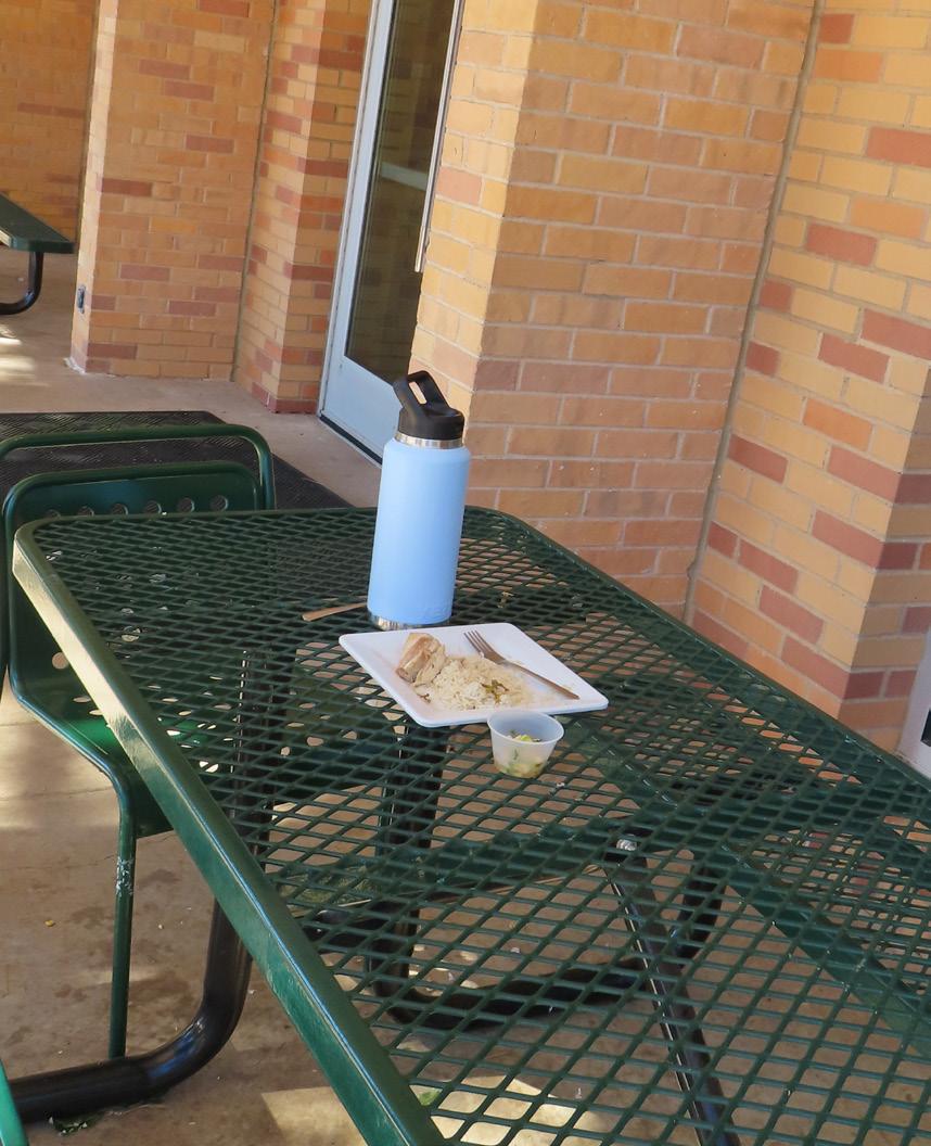 POOR MANNERS: Dirty dishes and trash left on tables outside the dining hall.